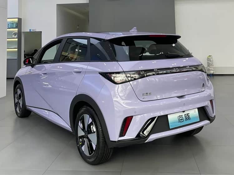 海豚这车的设计也挺讨巧。车身4米出头,轴距却有2米7,后排坐成年人完全不憋屈。外观走的是可爱路线,封闭式前脸配上贯穿式灯带,再加上那个标志性的"海豚眼"大灯,辨识度很高。配色也丰富,芋泥紫、芝士黄这些名字一听就是冲着年轻女性用户去的。