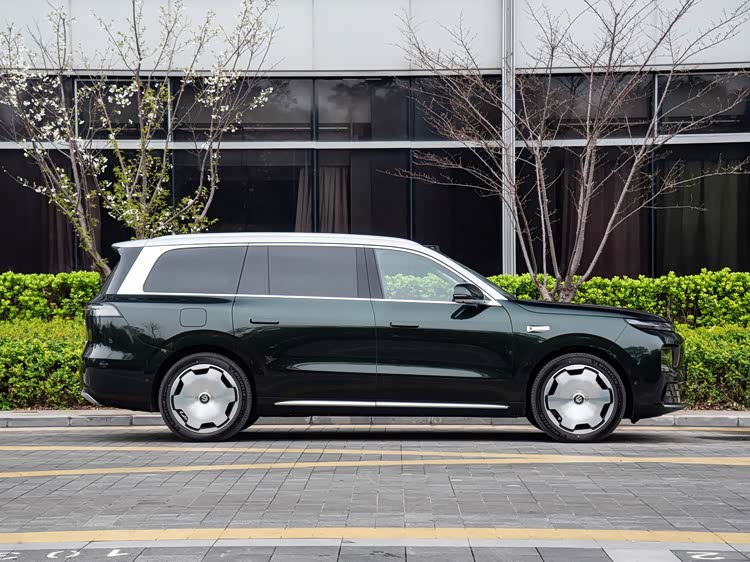 值得注意的是,纯电版本由于布置前备厢,在机舱盖线条上与增程版形成差异,这种结构变化更多是功能导向,而非单纯造型调整。车身配色提供松谷绿、液态银、金属黑、天幕灰以及光电白,属于常规覆盖,不强调视觉冲击,更偏向日常使用场景。