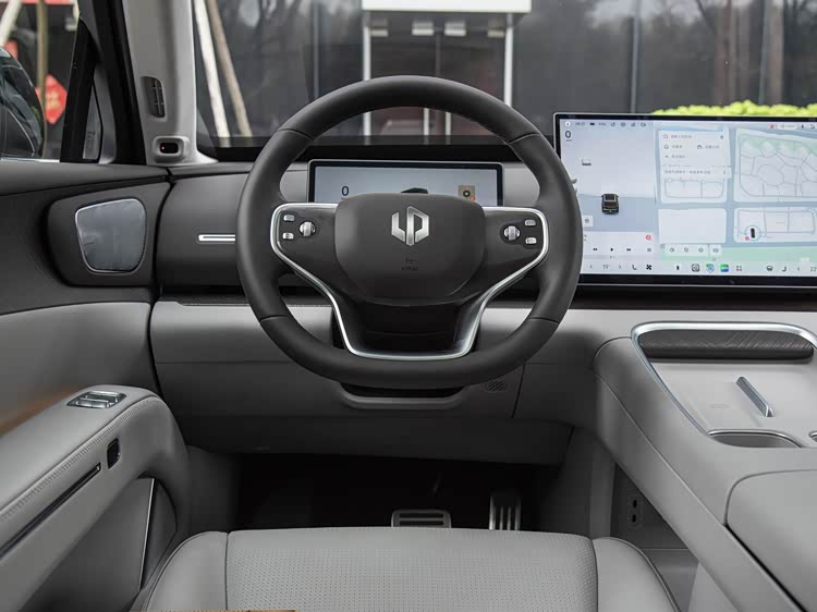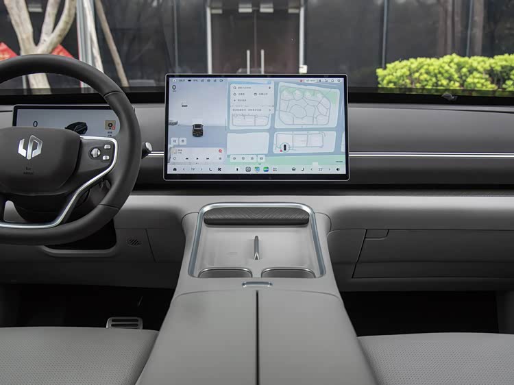 进入车内,零跑D19的设计思路偏向简化实体按键,通过屏幕与HUD整合信息显示。60英寸AR-HUD覆盖前方视野,将导航、车速等信息投射至前挡风玻璃区域,这类配置在长途驾驶中可以减少视线转移。中控区域采用悬浮式17.3英寸屏幕,搭配10.25英寸仪表屏,后排则提供6英寸控制屏与21.4英寸娱乐屏。多屏组合可以满足不同位置乘客的信息需求,但同时也对系统流畅度与交互逻辑提出更高要求。