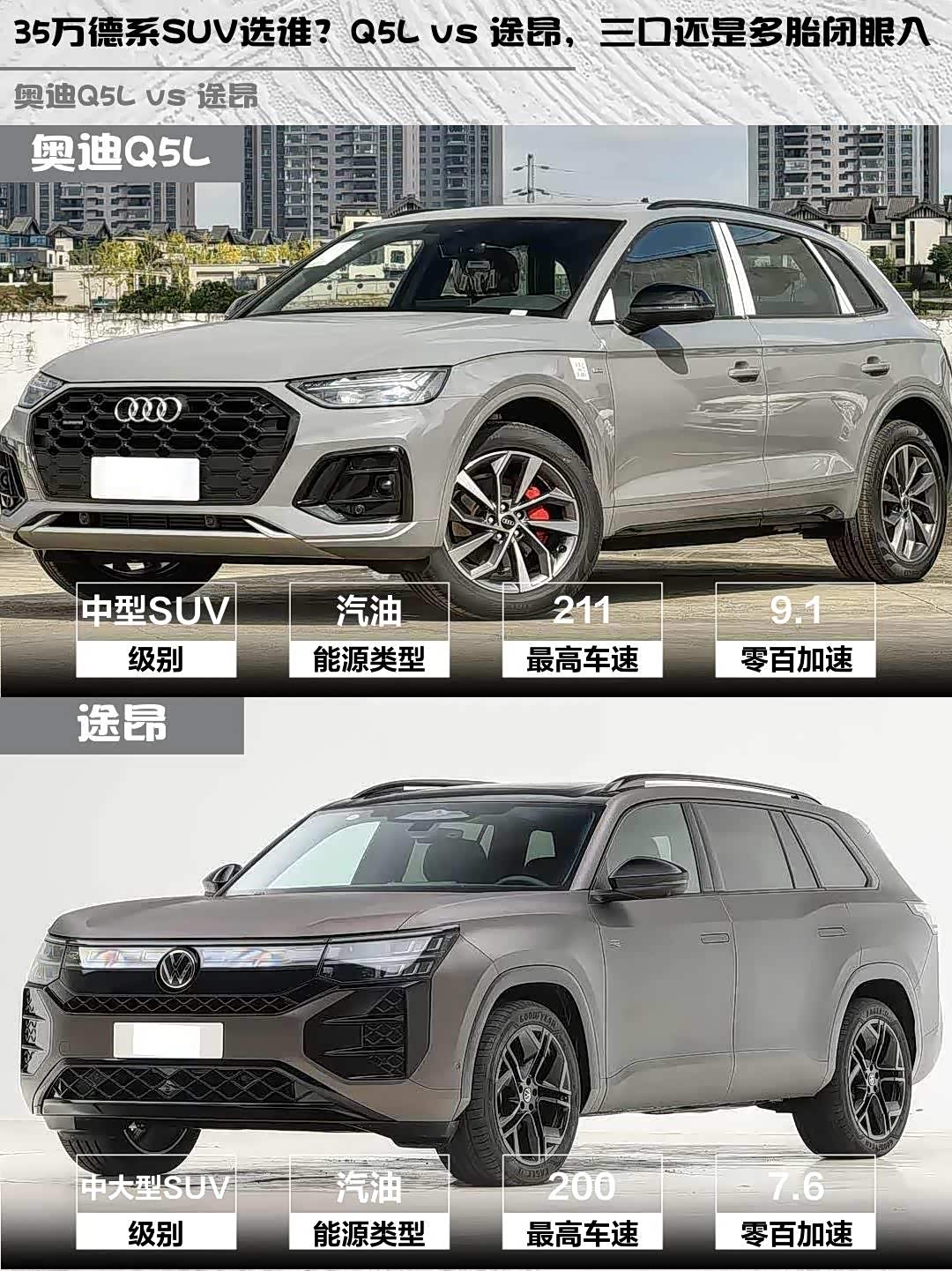 价格上Q5L典藏版指导价34.98万比途昂Pro便宜1万,但终端优惠后其实差价不大。要我说,要品牌格调就冲奥迪,要实用主义大众更香!你们会pick哪台?