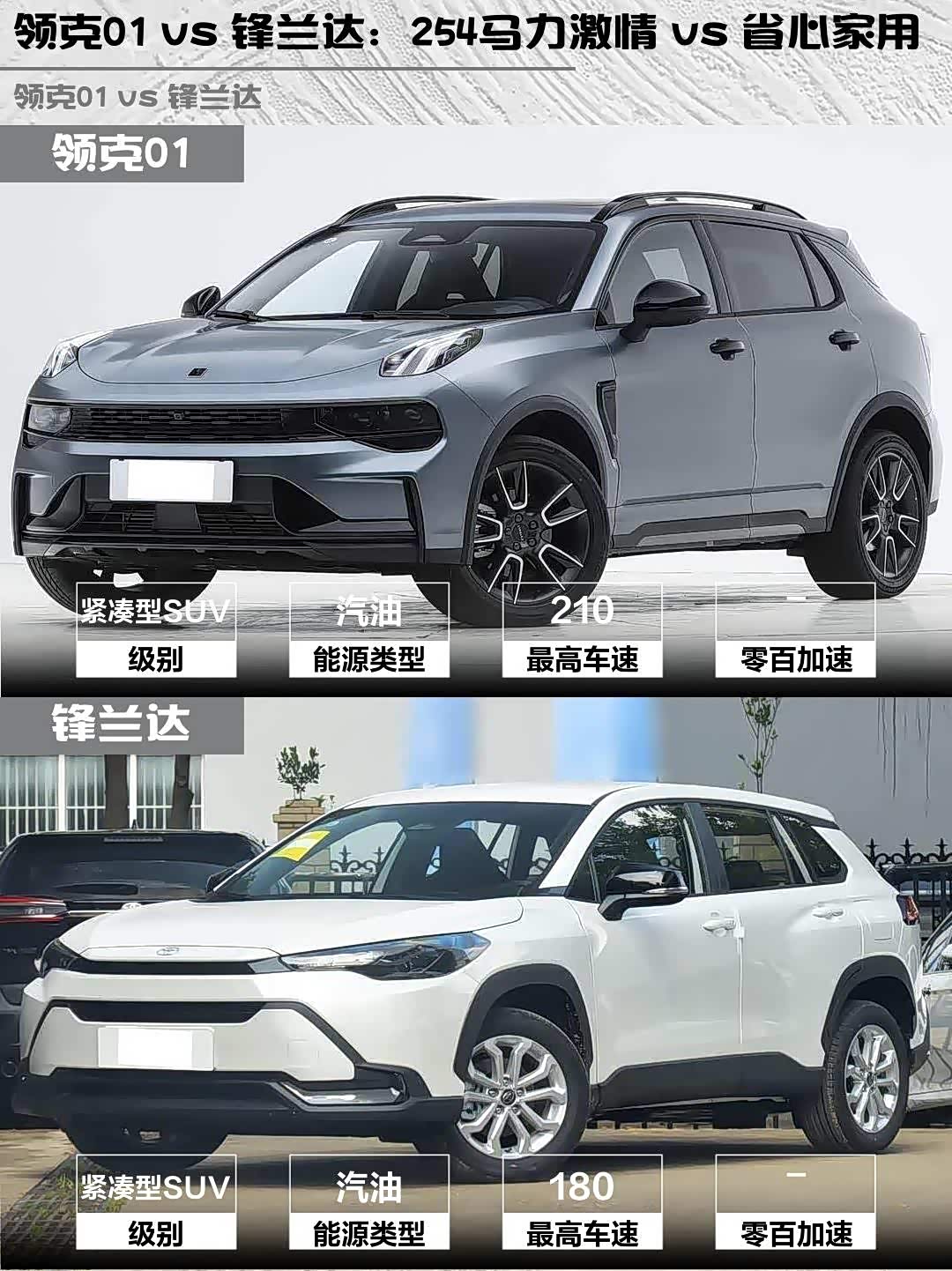 要驾驶乐趣和豪华感?选领克01!254马力+电子挡把+翻毛皮内饰,年轻人开着绝对爽。要省心省钱?锋兰达更合适,油耗低保养便宜,适合日常代步。两款车性格差异明显,看完你更倾向谁呢?
