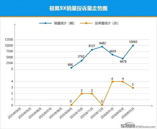3月,极氪9X完成自我突破,月销量首次站上万辆关口,连续5个月跻身大型SUV市场销量榜前三甲。从其上市至今的销量走势来看,整体呈现“冲高-回落-反弹”的态势,展现出强劲的市场潜力。作为一款定位高端的自主品牌车型,能取得如此成绩实属难得。与销量走势有所不同的是,极氪9X的月投诉量始终保持在个位数,且在3月销量创新高的同时,投诉量反而呈现下降趋势,短期口碑表现出色。从其本月投诉销量比变化可以看到,不仅保持着较低数值,且较2月份仍有显著回落,在榜单所有车型中排名首位,表现进步明显。短期来看,极氪9X有望延续销量增长势头,持续巩固在细分市场中的领先地位。