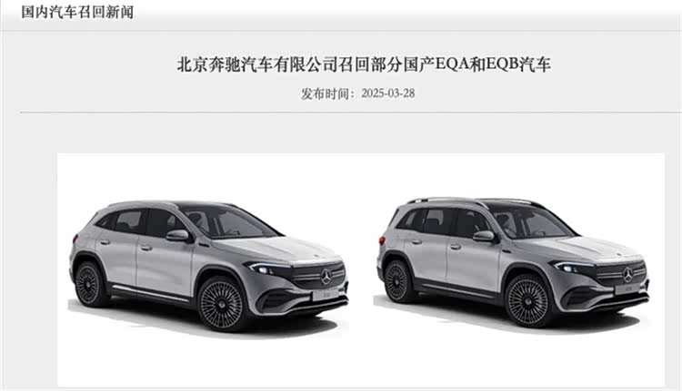 这一天,北京奔驰向国家市场监督管理总局备案了一份召回计划,召回2021年4月至2023年10月生产的部分国产EQA和EQB,共计12308辆。