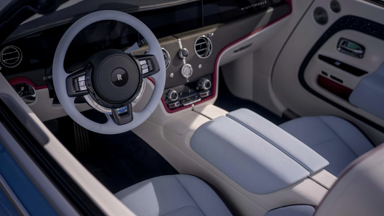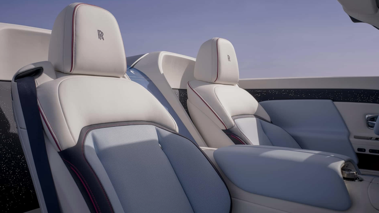 车内细节同样奢华。座椅采用柔和的查尔斯蓝皮革,搭配优雅白饰边和深海军蓝嵌饰,可伸缩软顶采用浅银色涂装。当然因为是敞篷车,所以没有了标志性的星空顶,取而代之的是全新的星光微风套件。