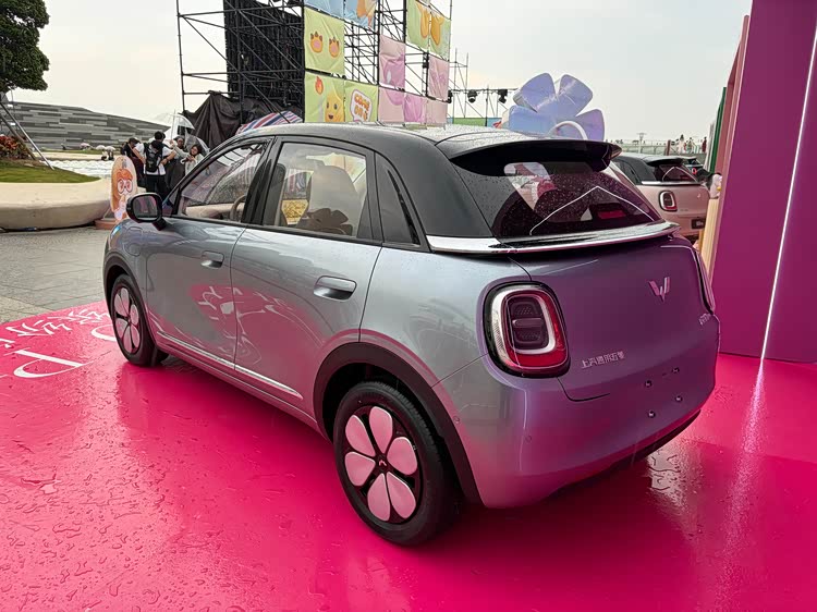 具体来看,因为本身也可以看作是五菱缤果的改款版本,对于外观内饰的进行了调整,前脸部分给人的第一感觉是更像欧拉好猫,但此前文章也说过,大家都是致敬和模仿,也不用五十步笑百步,总的来讲即大灯组采用了更加圆润的造型,带动整个车鼻也更为流线,扁平的下格栅,提升了层次感,加入镀铬装饰,与银标形成呼应,增强了高级感。车身侧面当然不会有明显的变化,标志性的线条得到延续,依旧短小精致而可爱,撞色车身,悬浮式车顶不会缺席,花瓣式的轮毂也增强了时尚感。