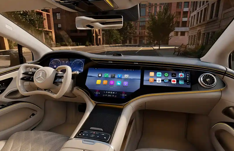 在智能座舱方面,新车依然采用了55英寸MBUX三联屏设计,并且依旧保持了奔驰旗舰电动车的科技感。新车将会搭载最新的MB.OS车载系统,在交互体验、功能拓展以及系统响应速度上都有所提高,给用户带来更加完整的智能化体验。