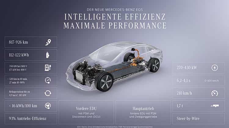 新款奔驰EQS官图发布 最大续航里程可达926km