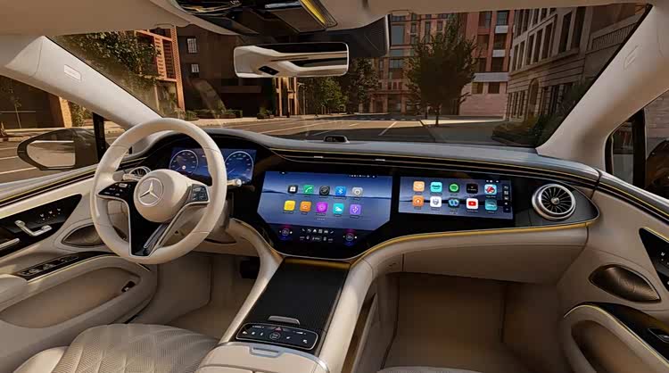 智能座舱进一步优化,55英寸的MBUX超联屏集成了12.3英寸驾驶员仪表、17.7英寸中控屏与12.3英寸乘客屏。MB.OS车机系统支持整车软件空中升级,用户可通过奔驰商店和奔驰APP获取不断丰富的数字额外服务。新一代MBUX系统集成微软人工智能技术,MBUX虚拟助手可以借助互联网知识库进行复杂的多轮对话。