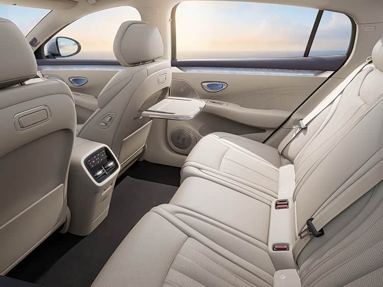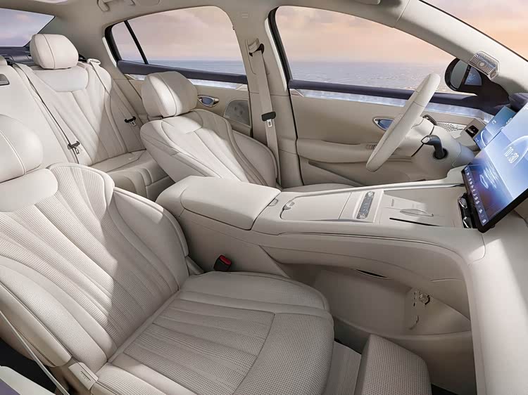 比亚迪海豹08车内的设计排布与海洋网在售车型有较大不同,搭载全新设计的D型三幅式多功能方向盘,中央通道功能区进一步减少了按键,整体看起来相当简洁。在此基础上,比亚迪海豹08提供带腿托的副驾座椅,后排配有独立的空调控制屏,“老板键”、后排小桌板等功能配置也一应俱全。