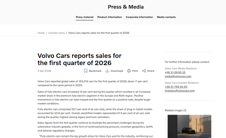 如果再把经营层面的压力放进来看,这种“借势心态”就更容易理解,也更值得警惕。沃尔沃官方披露,2026年一季度全球销量为153,316辆,同比下滑11%;其中大中华区销量28,330辆,同比下滑17%。更微妙的是,大中华区电气化车型销量同比增长116%,达到7,604辆,但轻混和燃油车型销量则同比下滑32%。这说明什么?说明沃尔沃在中国不是完全没有增长亮点,但品牌整体仍处在明显承压期——新能源在补,基本盘却在掉。这个时候,品牌当然会更渴望被看见、更渴望制造讨论、更渴望在舆论场上证明自己还在场。问题在于,当销量焦虑开始传导到传播端,品牌最容易犯的错误,就是把讨论量误当成价值感,把曝光度误当成存在感。