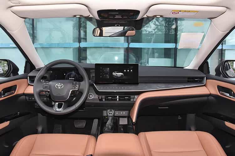 接着咱们再来看看亚洲龙星耀版、雅阁以及凯美瑞他们在内饰方面的差异。在内饰布局上,三款车都差不多,都是一块儿仪表屏+中控屏的组合,区别比较大的就是屏幕尺寸和操控按键的位置这些,那亚洲龙星耀版的内饰和普通版本一样,燃油版是7英寸的液晶仪表+10.25英寸的中控屏,混动版则是12.3英寸的仪表屏+中控屏,它这个内饰比较有亮点的,我认为就是中控屏下方这个区域,它把空调出风口以及温度、风量这些按键集成到了一起,所以看上去会比较简洁干练。