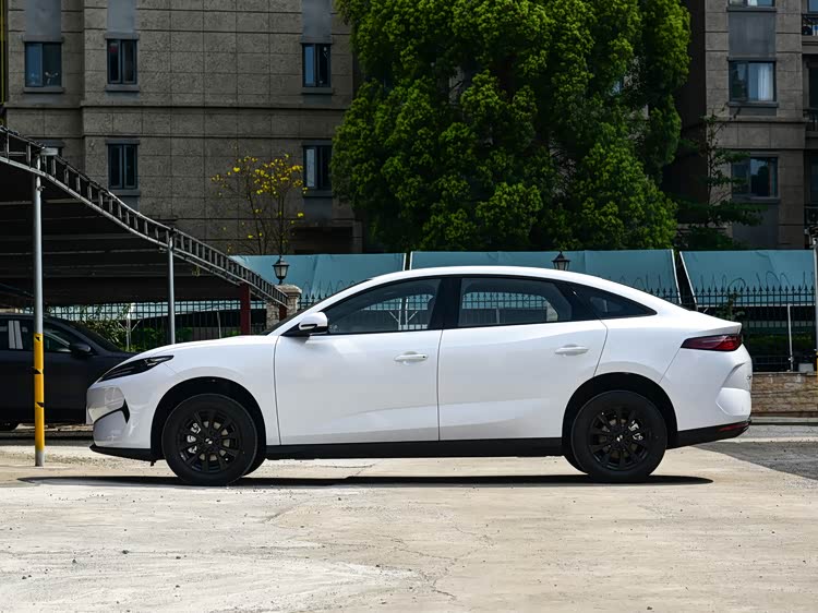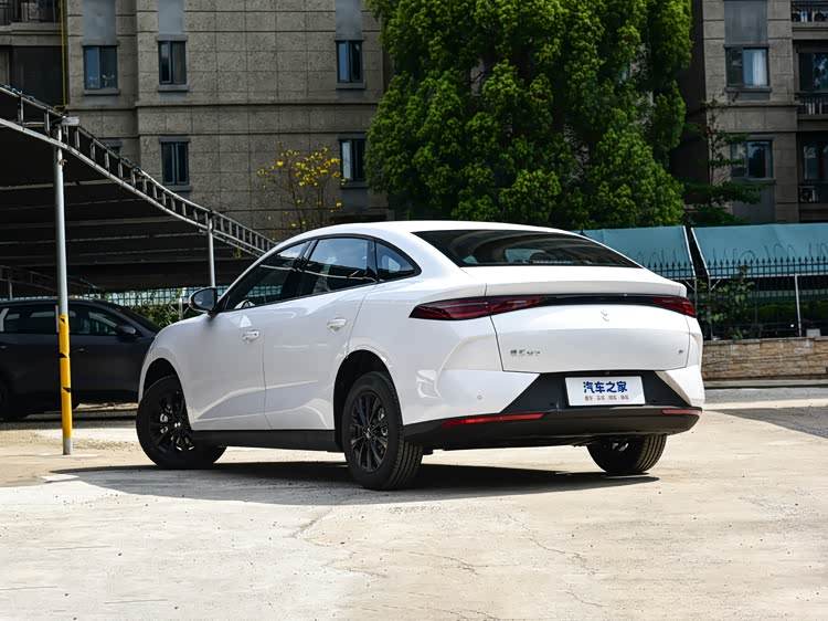 车身侧面线条简洁大方, 新车长宽高分别为4780/1900/1530毫米,轴距2820毫米,门把手采用传统设计,并配备17英寸轮毂。尾部造型简约,采用一体贯穿式LED尾灯设计,点亮后辨识度也不错。外观颜色上,提供雾语灰、云阶白、酷乐米三款车色。