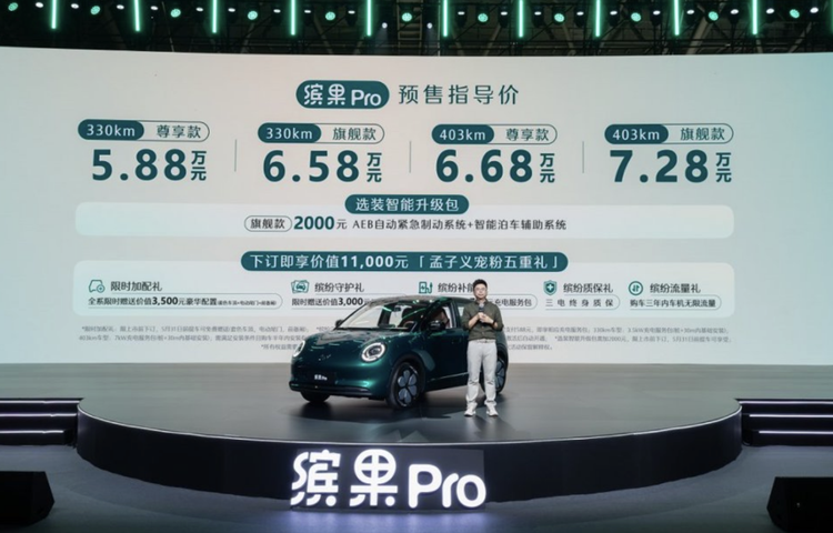4月14日,五菱 缤果Pro(参数|询价)正式开启预售。四款配置,5.88万元至7.28万元的价格区间,配合最高价值11000元的“孟子义宠粉五重礼”,让A0级纯电市场又多了一个极具竞争力的新产品。