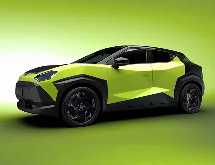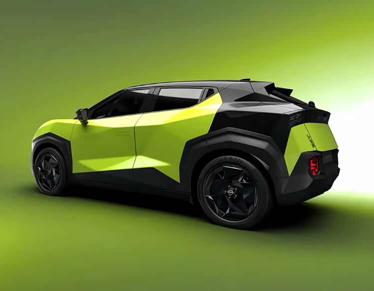 外观方面,从官方发布的图片来看,第三代JUKE延续了该车系标志性的设计语言,但在细节上进行了现代化重塑。前脸保留了分体式大灯布局,日间行车灯采用更细长的光带设计,从车头延伸至翼子板区域。车身线条棱角分明,呈现出多面体轮廓的立体感,整体风格接近2024年发布的Hyper Punk概念车的量产简化版。车辆采用双色车身涂装,前后保险杠、侧裙和轮拱饰条均为黑色塑料材质,车顶、外后视镜外壳及尾门扰流板则采用亮黑色处理。