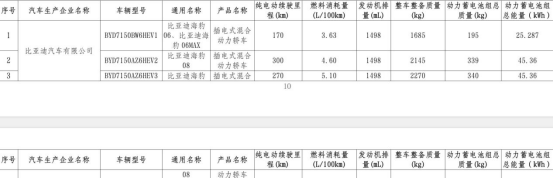 然后我们再来看看有关海豹08最新公布的信息,首先是续航。这次工信部新一批的减免购置税目录公布了海豹08 插混车型的纯电续航,海豹08 配备容量为45.36kWh的电池,百公里油耗为4.6L和5.1L,WLTC工况纯电续航里程分别为300km和270km。