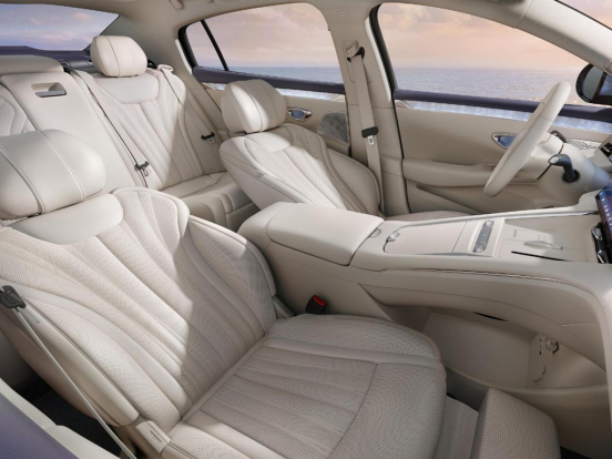 接下来看座椅,海豹08座椅配置颇具亮点。主副驾均为零重力座椅,全车四个座椅都配备了通风、加热与按摩功能,后排两个座椅还带有腿托。副驾座椅配备了老板键,后排乘客可电动调节前排副驾的位置,并且还贴心地配备了小桌板。从后排的图片可以看出,海豹08的后排空间也相当宽敞,非常期待它的实际体验。