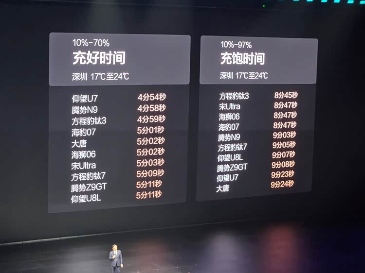 而且我们近期试驾了多款比亚迪的闪充车型,包括王朝、海洋、腾势、方程豹和仰望品牌旗下的产品,在闪充速度这一块,和3月5日比亚迪在发布会PPT上展示的相差无几,同样是非常震撼的充电速度。所以很多潜在车主现场看了之后,对自己之前的动不动只能跑几十千瓦的老款新能源车,嫌弃得直呲牙。