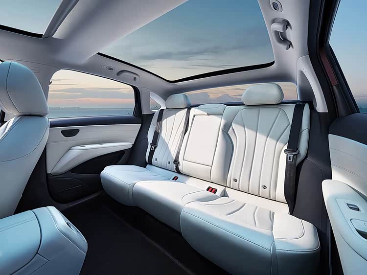 下面是车内后排的照片,可以看到新车的前排座椅在去掉头枕后可以与后排座椅相连,并形成大床模式。后排座椅还支持118度仰角,适当增加后排乘客的乘坐体验。其它配置方面,新车还有分体式天窗、物理遮阳帘等。