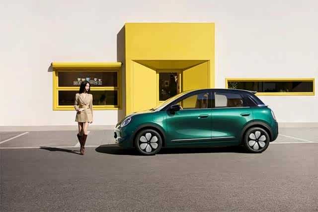 车身尺寸4050×1758×1580mm,属于标准的A0级身材。前脸是摩登复古风格,三段式光带的大灯在夜晚辨识度不低。车尾的复古尾翼和矩光尾灯,算是整车设计上的记忆点。