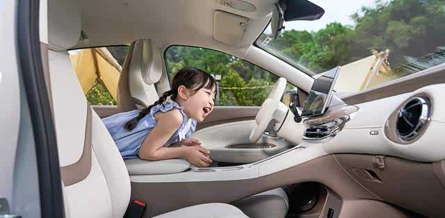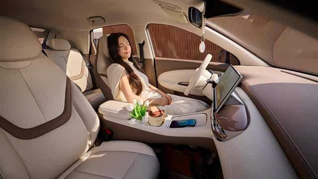 内饰叫“浮岛绮境座舱”,中控台是“水韵浮岛”设计,线条圆润。浅米棕和焦糖咖两种双色内饰,一个偏慵懒,一个偏治愈。细节上,为长美甲设计的浮岛式开关、方便补妆的美颜柔光镜——这些明显是冲着女性用户去的。
