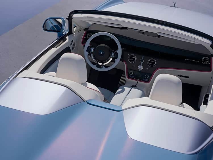 再看内部,新车只设两个座位,中间有个马鞍造型的扶手,滑开后能看到“欢庆女神”控制旋钮。最大的亮点是“星光微风”系统,用10500根光纤模拟夜莺叫声的声波图案,环绕在车内。首发内饰用了查尔斯蓝和格蕾丝白搭配,点缀牡丹粉色,车顶面料特意选了羊绒复合材料,既能隔绝机械噪音,又能保留雨滴落在车顶的声音。