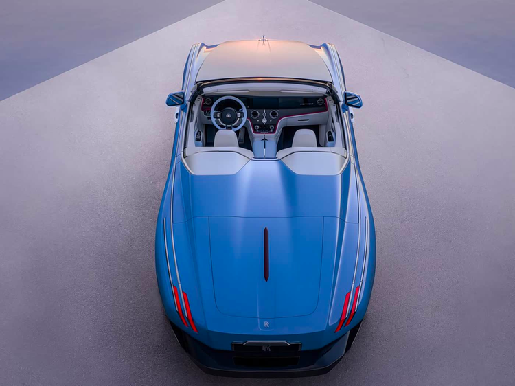 尺寸方面,其长5.76米,尺寸几乎和幻影一样。首发车的颜色叫“蔚蓝海岸蓝”,漆面里加了红色金属片,灵感来自1928年的老款车型。