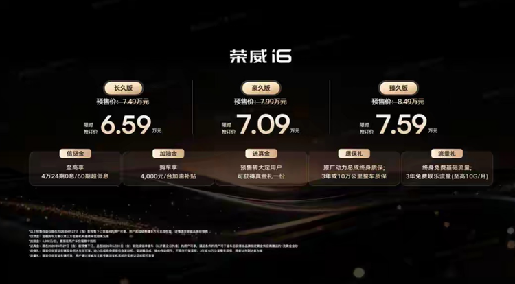 当然,荣威i6的诚意并不仅限于产品本身。预售期间,新车同步推出了极具诚意的“三金礼”重磅购车权益。至高4万元2年0息或60期超低息的金融方案,极大降低了年轻家庭的购车门槛;4000元/台的加油补贴配合5月底前锁单提车限时赠送的999足金金钞,让买车成为了一笔实打实的“理财”。