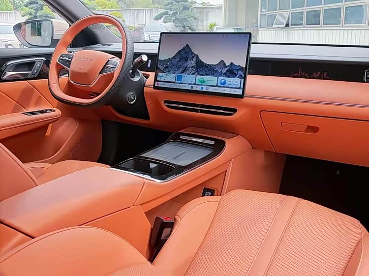 内饰方面,中控台大量运用横向线条,软性材质和皮质包裹随处可见,质感出众。电子怀挡新颖独特,双幅多功能方向盘操作方便。内嵌液晶仪表搭配15.6英寸的2.5K悬浮中控大屏,科技感满满,车机搭载的高通骁龙8155芯片,让系统运行流畅。