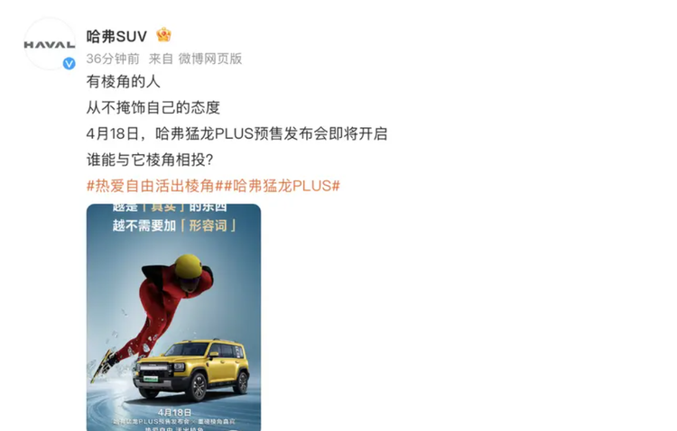 哈弗猛龙PLUS将于4月18日开启预售,提供5座/7座版本