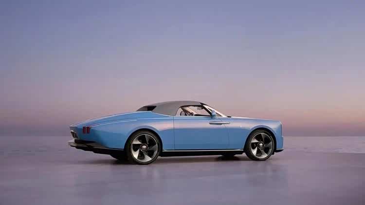 材质运用同样极致讲究,首发车型采 Charles Blue 与 Grace White 双色内饰,搭配 Deep Navy、Peony Pink 点缀与开孔黑木饰板。为了保留开篷驾驶的浪漫氛围,车顶采用喀什米尔羊绒与高性能织料混纺的复合材质制成,并经过特殊调校,能让雨滴敲打车顶的声音传入车内,同时隔绝机械运转噪音。