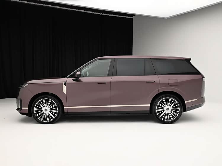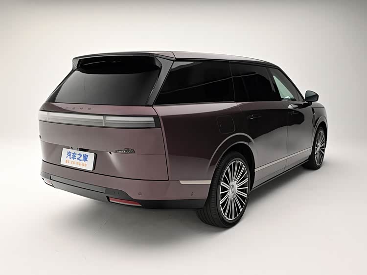 车侧采用贯穿式腰线,从前灯延伸至尾灯位置,强化车身整体性。隐藏式门把手与悬浮式车顶属于当前新能源车型常见配置,其作用更多在于优化风阻与视觉简洁度。轮圈采用密辐式结构,偏向舒适取向设计。从车顶线条来看,其走势接近平直,这种处理方式通常服务于车内头部空间,尤其是第三排乘客的乘坐姿态。尾部则延续贯穿式灯组,与前脸形成呼应关系,整体风格趋于统一。车身提供五种配色,在一定程度上满足不同用户审美偏好。