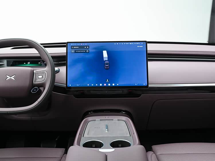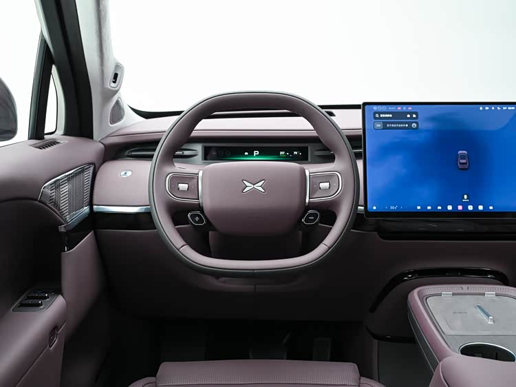 进入车内,小鹏GX采用环抱式座舱布局,中控区域通过横向延展与镀铬装饰进行分层。方向盘为双辐结构,并采用线控技术,支持135mm电动伸缩,同时具备迎宾联动功能。中控屏尺寸为17.3英寸,分辨率达到3K级别,配合氛围灯系统形成多维度视觉交互。