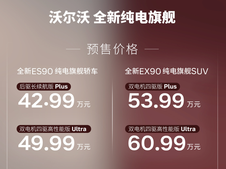 沃尔沃双旗舰预售|ES90-42.99万,EX90-53.99万