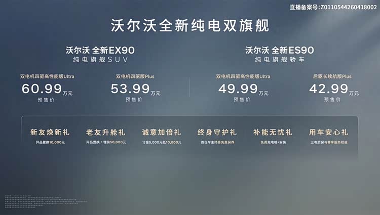 日前,沃尔沃ES90正式开启预售,新车推出后驱长续航版Plus、双电机四驱高性能版Ultra两款车型,预售价分别为42.99万元和49.99万元。此次,新车基于SPA2原生豪华纯电架构打造,并且应用全域800伏平台,定位中大型轿车,CLTC续航最高848公里。