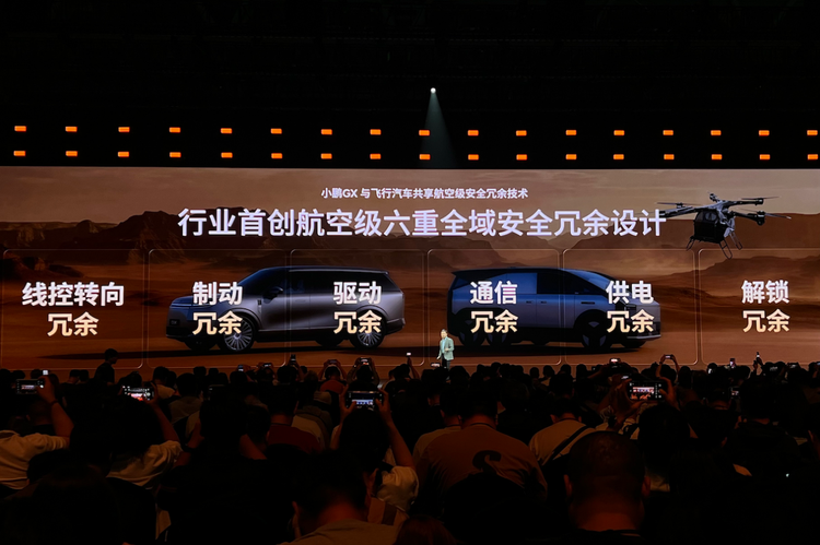 航空级安全冗余技术的民用化,是小鹏GX的一大突破。行业首创的六重全域安全冗余系统,覆盖线控转向、制动等六大核心维度,与小鹏飞行汽车共享同源技术,即便多重系统失效,车辆仍能平稳应对。