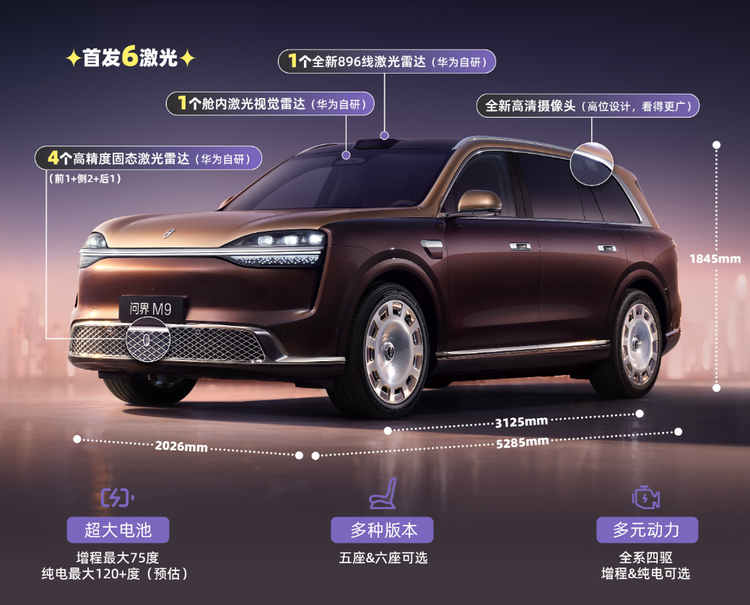 前几天新款理想L8搭载4颗激光雷达,我已经觉得非常厉害了,没想到新款问界M9将搭载6颗激光雷达!同时,在尺寸、动力、续航和智能化配置方面还将全面提升,今年刚买的车主,多少有点失落了吧?