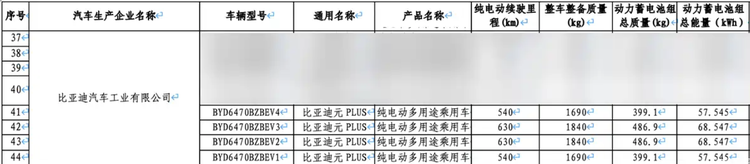 车家号·0浏览·2026-04-15 23:19 · 北京日前,比亚迪全新 元PLUS(参数|询价)登上减免车辆购置税的新能源汽车车型目录(第二十九批)。公示信息显示,新车将提供57.545千瓦时与68.547千瓦时两种电池包,对应CLTC纯电续航里程分别为540公里和630公里。