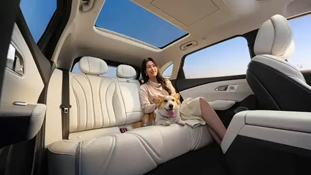 内饰以 “文房雅居” 为设计理念,中控台布局规整,座舱采用环抱式设计,车内软质包覆比例约60%。座椅及内饰面料采用超级皮革与珠光面料,具备低气味、高耐久、浅划痕自我修复等特性,搭配 3D mesh 吸风结构与绗缝工艺。