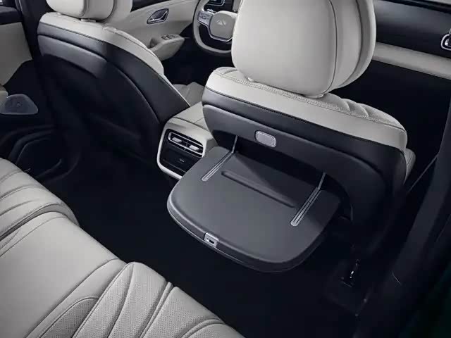 座椅方面,前排配备双零重力座椅,支持 16 向电动调节、通风、加热与按摩功能;二排座椅支持电动角度调节,同样配备通风与加热;车辆可实现前排及前后排大床模式,拓展休憩与装载场景。车内还搭载 厚度 28mm的6 铰链式小桌板。