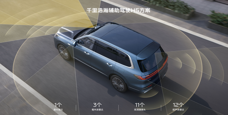 主动安全方面,千里浩瀚H5辅助驾驶方案支持车位到车位的城市无图NOA,40多项L2级基础安全功能全覆盖。针对大六座SUV视野盲区多的痛点,多传感器融合技术实现了全方位无死角监控:后方来车提醒、开门预警、倒车侧向辅助……每一个功能都在关键时刻默默守护。实际体验中,盲区监测的反应速度很快,后方有自行车快速接近时,开门预警会立刻发出警报。