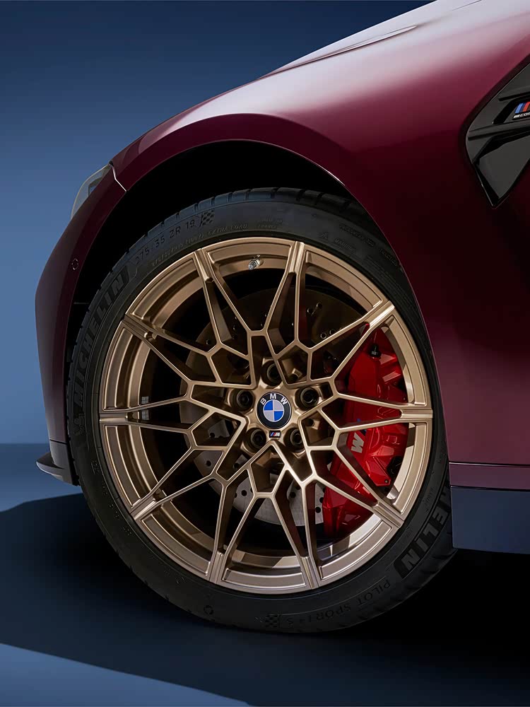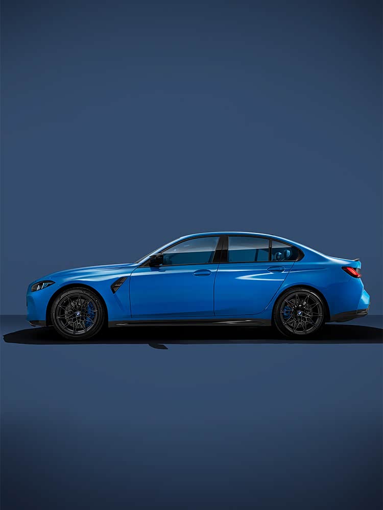 外形细节方面没有什么变动,前脸基本上沿用了在售宝马M3的设计语言,大鼻孔格栅内部使用了横幅式结构进行装饰,有着比较强的层次感;大灯组采用了熏黑处理,内部集成有透镜以及两条折线形的日行灯,风格显得比较锐利。前舱盖上设计有多条隆起的筋线,凸显了力量感。