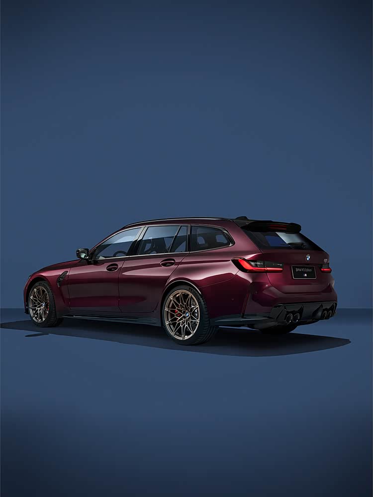 侧面造型方面,三厢版的风格和标轴宝马3系保持一致,旅行版车身属于经典的旅行车造型,车顶带着明显的弧度,配备有粗壮的行李架,有着一定的力量感;腰线采用了分段式设计,点缀出了车身侧面的层次感;前翼子板位置设计有导流槽,搭配多幅式古铜色轮毂以及大尺寸刹车盘凸显了高性能车型的身份。
