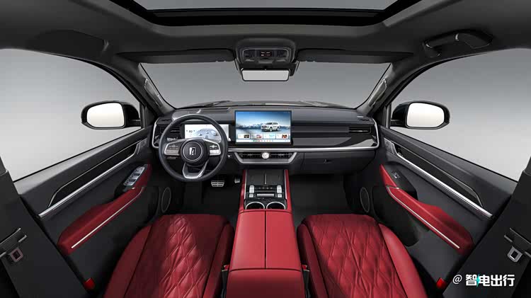 内饰也颇具看点,也是坦克500黑武士版首次提供红色内饰选择。车内采用上黑下红的双色搭配,中控台上部保持黑色,座椅、门板扶手、中控下方区域使用红色材质,部分位置加入镀铬饰条点缀,座舱视觉感受和普通版车型差异明显,整体布局、中控屏尺寸、按键设置和普通版车型保持一致。