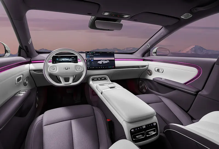 智能配置方面,A06搭载10.17英寸液晶仪表与15.6英寸悬浮中控屏,内置MTK8676车规级芯片。高配激光雷达版配备1颗激光雷达、11个摄像头等27个感知元件,支持高速NOA领航辅助。