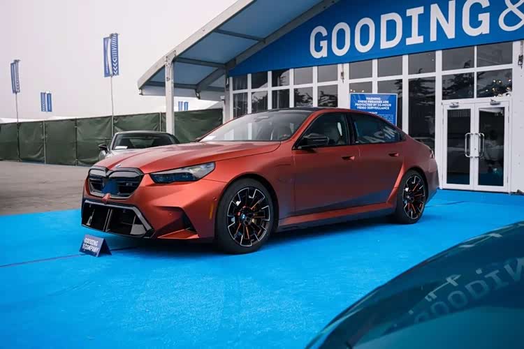 这台车是宝马在美国交付的第一辆G90 M5,只此一辆,但它也并非是普通意义上的商品,因为它将通过拍卖的形式决定谁才是车主,而所有的收益都将用于公益事业。第一眼大家也看出来了,这车最大的亮点就是外观采用了个性化定制的磨砂橙金属漆面,这也是唯一一辆采用这个配色的G90 M5。和车漆相呼应的还有前20寸、后21寸的双色952M型轮毂,B柱位置还能看到专属的#1/1标识。