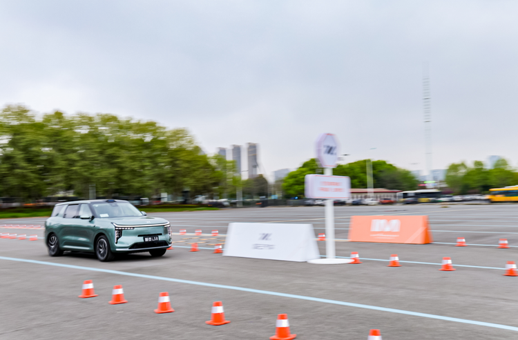 智己LS8的底盘硬件堪称“满配”:120mm超大行程智能闭式空悬、德国大陆MKC2线控制动、四活塞高性能固定式卡钳,搭配前双叉臂后多连杆悬架架构,从硬件层面奠定了百万级驾控的基础。在场地试驾中,这套底盘的实力被展现得淋漓尽致。踩下电门,4秒级零百加速瞬间迸发,媲美4.0TV8发动机的澎湃推背感线性输出,没有纯电车常见的突兀闯动,加速过程一气呵成,从容又强劲。而制动表现同样令人安心,34.38米的百零制动距离,刹车脚感细腻线性,无急刹顿挫感,真正做到“刹停短一米,安全多一份底气”。