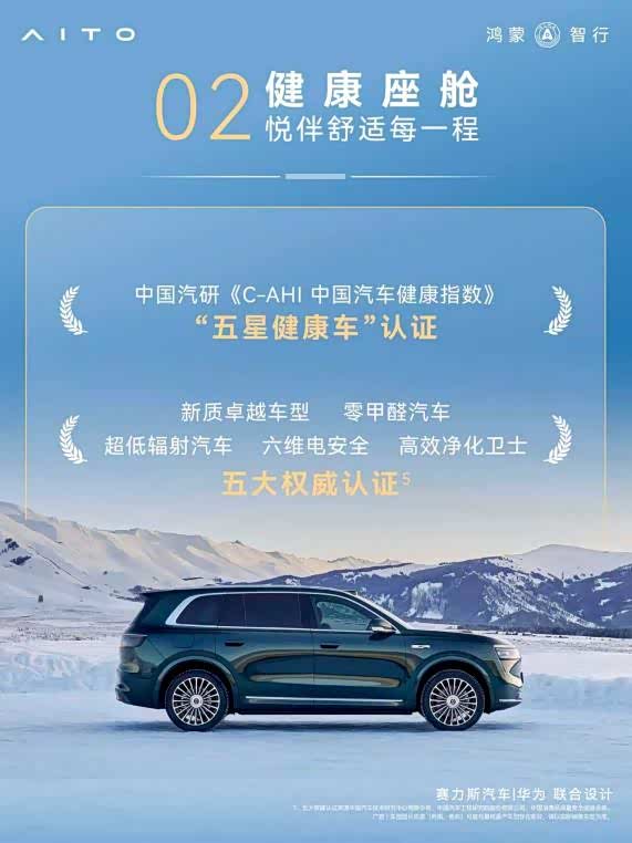 作为一款家庭旗舰,问界M8将智能科技、舒适体验与家庭出行场景深度融合,从座舱体验到动力表现,从智能交互到安全防护,每一处细节都彰显旗舰水准。问界M8对“新豪华”的实践与探索也收获了专业领域的全面认可。上市一年,其已收获C-NCAP(2024版)超五星安全认证、《C-AHI中国汽车健康指数》“五星健康车”认证、CA-CAP整车耐腐蚀性能测评“白金等级”证书、中汽中心“综合性能类验证”“智能底盘安全技术验证”等多项行业权威认证,全方位印证其作为新豪华标杆的行业地位与核心竞争力。