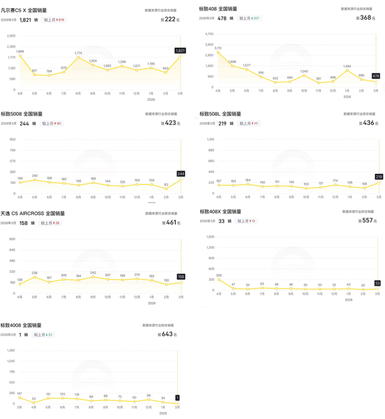 法系车在中国市场的失败并非偶然,自身原因是主要因素。在市场急剧变化时,法系车未能跟上变革步伐,错失电动化、智能化良机。当大众途观、本田CR-V、丰田汉兰达这些SUV车型在国内热销的时候,法系车还在靠几款轿车撑场面,等到标致4008和5008等几款SUV车型被引进,中国SUV市场早已成为哈弗H6、长安CS75等自主品牌车型的天下。