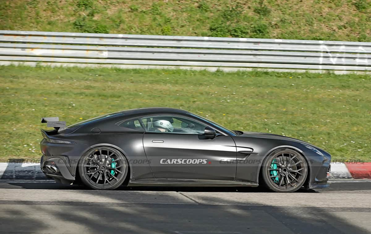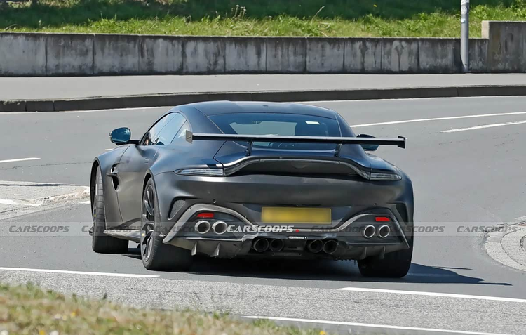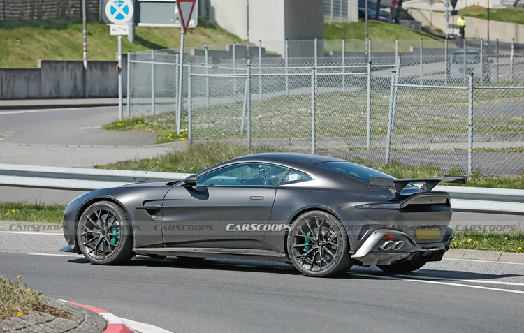 如果细看,便会发现这辆测试骡车在伪装之下充满了诚实的性能暗示。它装备了比标准版车型更显突出、更具攻击性的前部空气动力学套件,一个固定式的后扰流板悄然立于车尾,这一切都是为了在高速下换取更稳定的下压力。轮圈采用了Vantage S车型上的21英寸锻造合金款式,与之相配的是打孔刹车盘和醒目的绿色刹车卡钳,这些硬核装备的组合,毫不掩饰其征服赛道的意图。不过,关于那八个排气尾管,需要一点冷静的观察:实际上,只有靠近内侧的四个管道因使用而微微发黑,是真正发挥作用的排气;外侧的四个,在现阶段更多是原型车的装饰件。可以预见,未来的量产版本大概率会采用更常规、但气势不减的中置四出排气布局。这种在测试阶段的“虚张声势”,本身也成了一种有趣的信号。