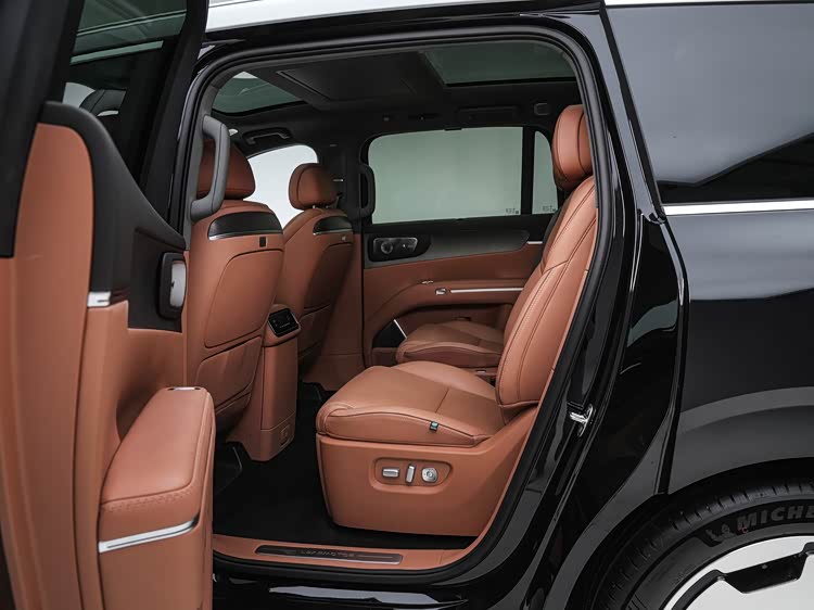 配置方面,新车标配了全景影像、透明底盘、全景天幕、辅助驾驶小蓝灯、双层静音玻璃、隐私玻璃、电动遮阳帘、全车座椅电动调节/加热、前两排座椅通风/按摩、三温区空调以及连续可变阻尼减振器等等,中配以上车型提供有空气悬架。